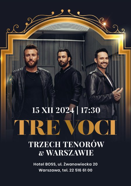 Tenorzy z Tre Voci wiedzą jak rozpalić publiczność. Przepełnieni miłością do ludzi i świata, w którym ponad wszystkimi podziałami króluje muzyka. Trzy indywidualności, trzy zróżnicowane głosy i jedna wielka przyjaźń. Z takiej mieszanki stworzył się charyzmatyczny koktajl mołotowa, którego największym atutem są występy na żywo. TRE VOCI już od ponad pięciu lat wzbudza zachwyt publiczności na całym świecie od Tajlandii, przez USA i Kanadę, po największe sale koncertowe w Polsce.