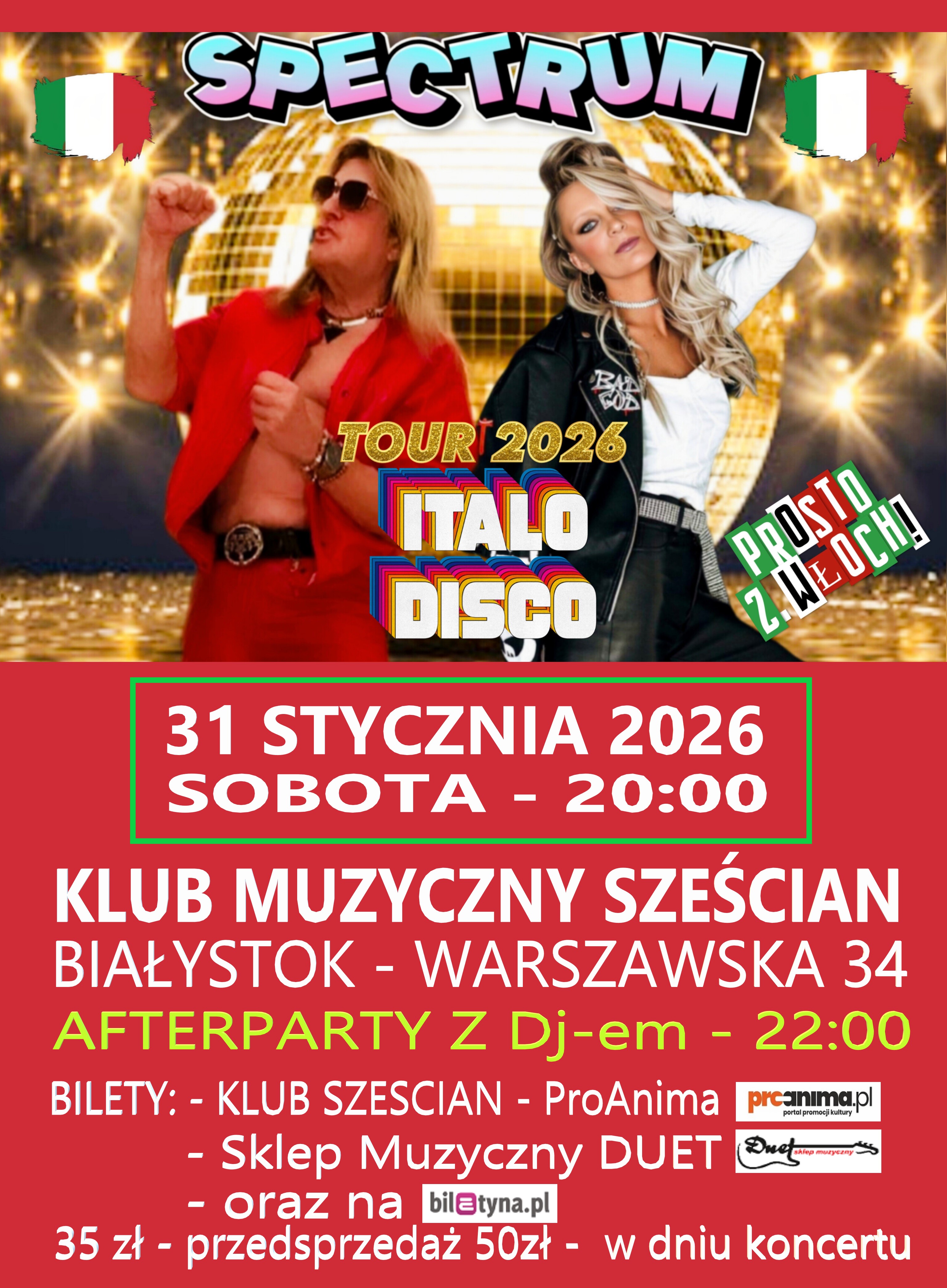 Zaśpiewają utwory ITALODISCO, stare i nowe niezapomniane przeboje. Będzie to opowieść muzyczna poprzez hity z dawnych lat, artystów, takich jak: ALBANO & ROMINA, PUPO, UMBERTO TOZZI, RICCHI & POVERI, SAVAGE, SPAGNA, FANCY, THE COLORS i wiele innych, także autorskich!