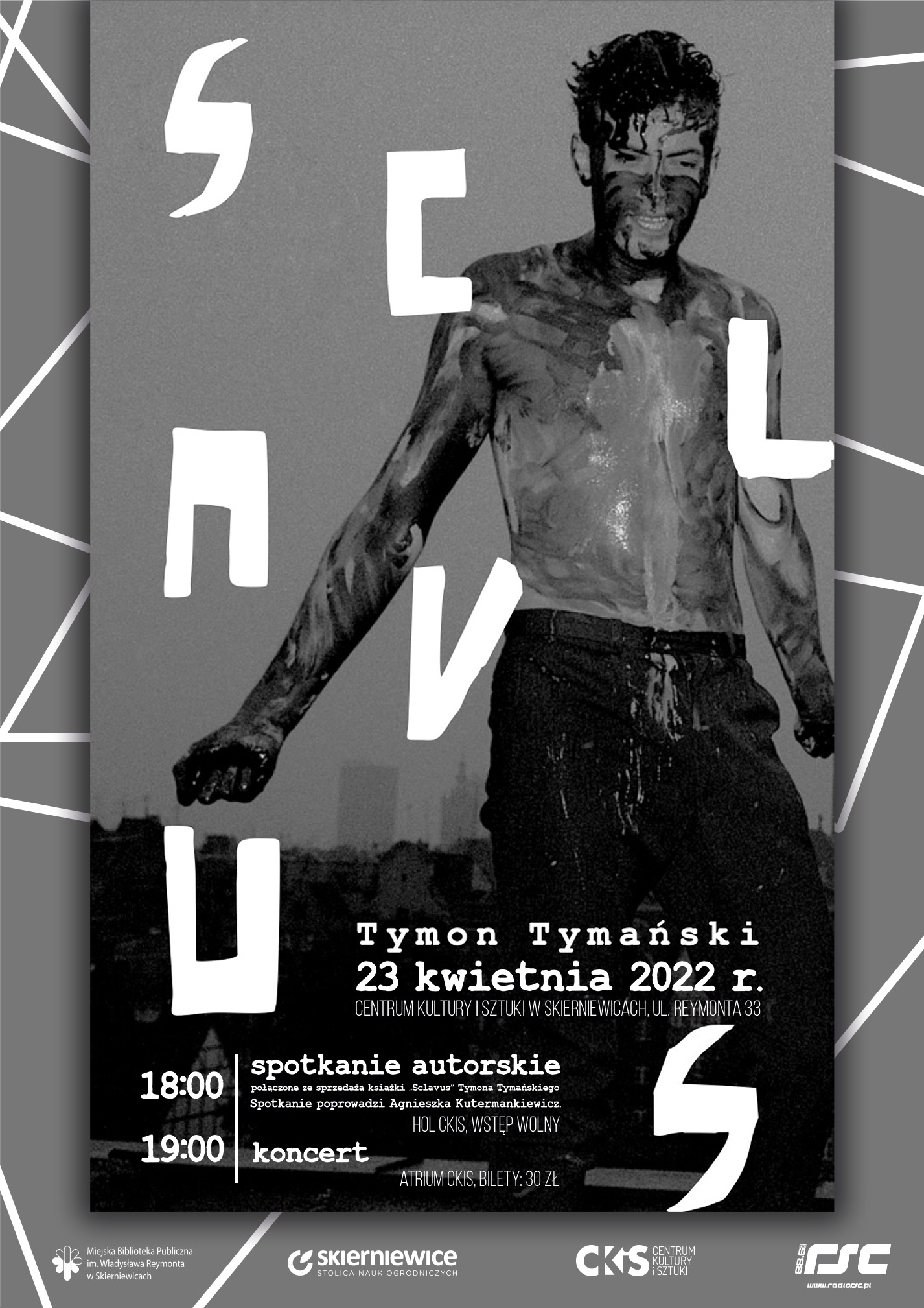 Wydana w grudniu 2021 r. książka pt. „Sclavus” to jego późny debiut beletrystyczny, w którym autor snuje frapującą opowieść o głośnej happenerskiej formacji Totart, wplatając weń historię trudnego dojrzewania, pierwszych miłości oraz muzycznych początków. Narracja obejmuje lata 1983-1989, choć pełno w niej typowych dla Tymańskiego współczesnych wtrętów, dygresji i anegdot, które żyją samodzielnym życiem. Spotkanie autorskie z Tymonem to szansa zapoznania się z artystą, jego najnowszym dziełem oraz wysłuchania recitalu solowego, w którym nastąpi prezentacja tzw. tryptyku sowizdrzalskiego - głównie piosenek z płyt "P.O.L.O.V.I.R.U.S.", "Wesele" i "Polskie gówno".