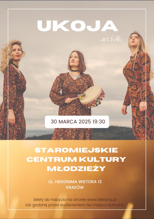 UKOJA – krakowski zespół, wykonujący autorską muzykę nazywaną art folk/poezja folkowa. W sercach muzyków UKOI gra bałkański ogień, który przeplata się ze słowiańską melancholią, klezmerską zadziornością i zwykłą ludową prostotą. To wszystko połączone z muzyką improwizowaną i pięknymi wielogłosami tworzy i cechuje muzykę zespołu UKOJA. Nazwa zespołu to nocny sen założycielki zespołu - Karoliny Patli. Słowo to urodziło się zaraz po przebudzeniu z pięknego snu, a łączy ze sobą dwa słowa - ukojenie, jako jedno z najpiękniejszych uczuć, odczuć, jakiego człowiek może w życiu doświadczyć oraz nazwy azjatyckiego ptaka Koyal, który do życia potrzebuje samotności, gór i wolności. To wszystko cechuje muzykę i twórczość UKOI.