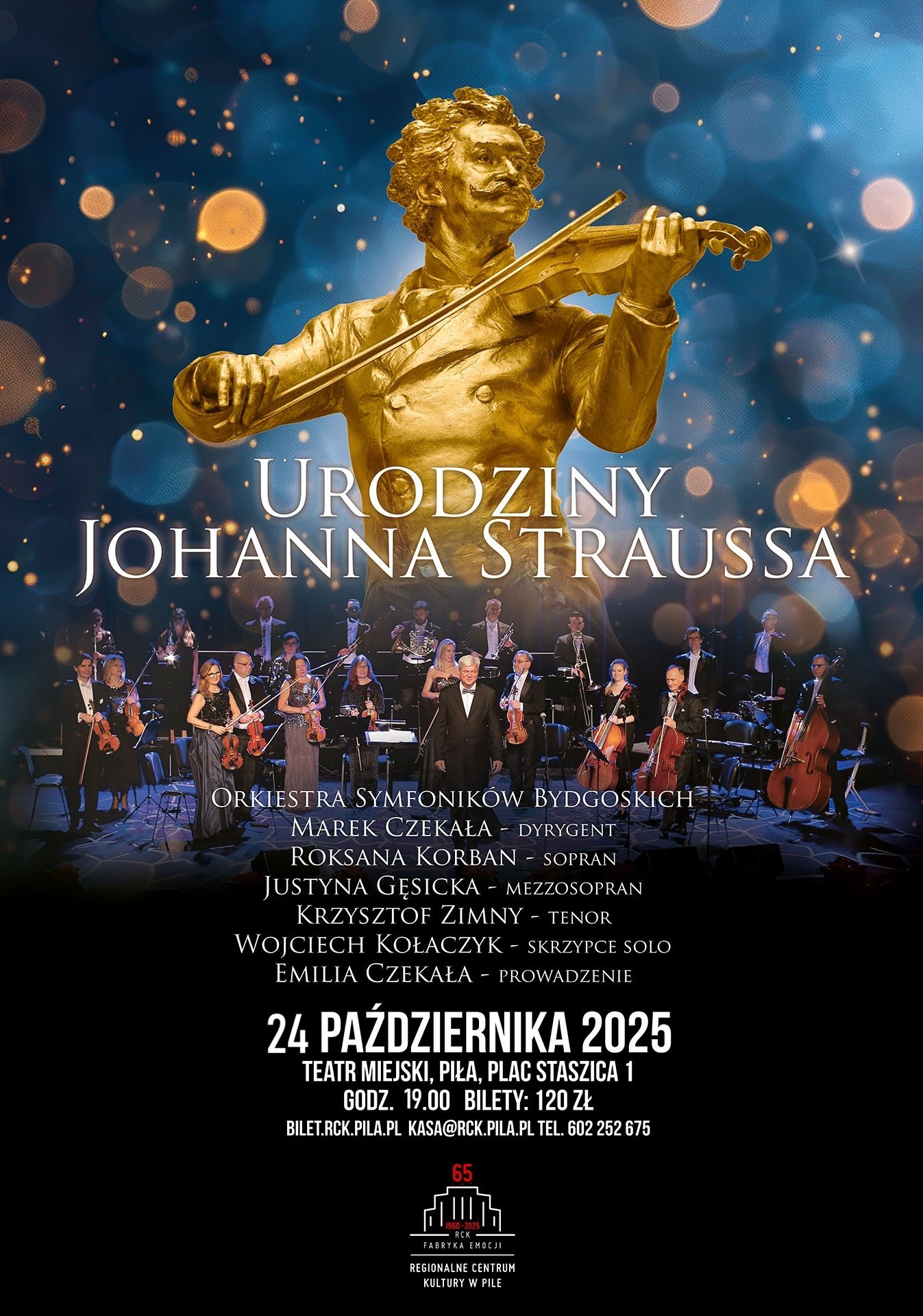 Z tej okazji pragniemy Państwa zaprosić 24 października 2025 roku na koncert, w którym wezmą udział znakomici śpiewacy, laureaci prestiżowych konkursów wokalnych: Justyna Gęsicka, Roksana Korban oraz Krzysztof Zimny. Nie zabraknie także samego Johanna Straussa, w którego wcieli się znakomity skrzypek, Wojciech Kołaczyk, a o słynnym „showmenie” XIXw. i anegdotach związanych z jego wielką karierą opowie Emilia Czekała. Orkiestra Symfoników Bydgoskich pod batutą Marka Czekały sprawi, że serca słuchaczy zabiją w rytm walca!
