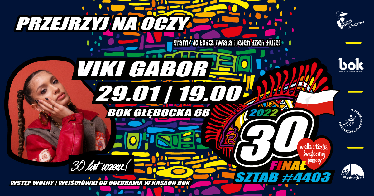 Viki Gabor dla WOŚP, wstęp wolny, wejściówki rozdawane w Kasach BOK