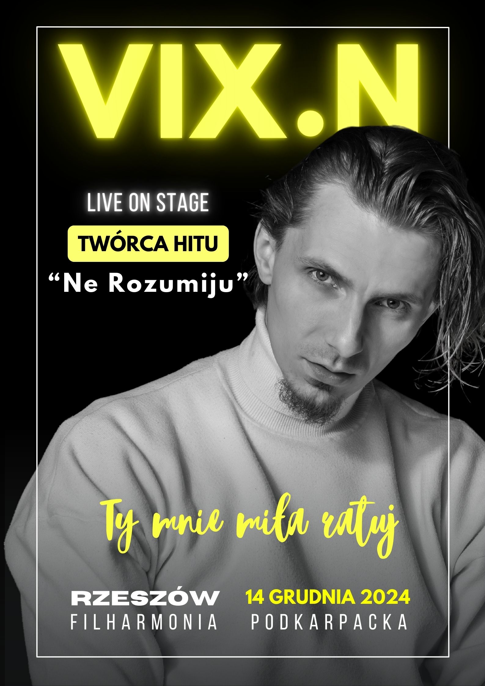 Zapraszamy na niezwykły koncert, który odbędzie się 14 grudnia 2024 roku w Filharmonii Podkarpackiej, gdzie wystąpi VIX.N – jeden z najbardziej wszechstronnych i rozpoznawalnych artystów na polskiej scenie muzycznej. Jego kariera, trwająca ponad dwie dekady, jest przykładem wytrwałości i artystycznej ewolucji. Od swojego debiutu w 2001 roku nagrał blisko 20 albumów, ale to właśnie najnowszy projekt „Blindbox” przyniósł mu zasłużoną sławę, zdobywając platynowy status, a hit „Ne Rozumiju” z tego albumu osiągnął diamentowy certyfikat. Piosenka ta stała się międzypokoleniowym hymnem, rozpoznawalnym przez słuchaczy w każdym wieku – od dzieci po ich dziadków.