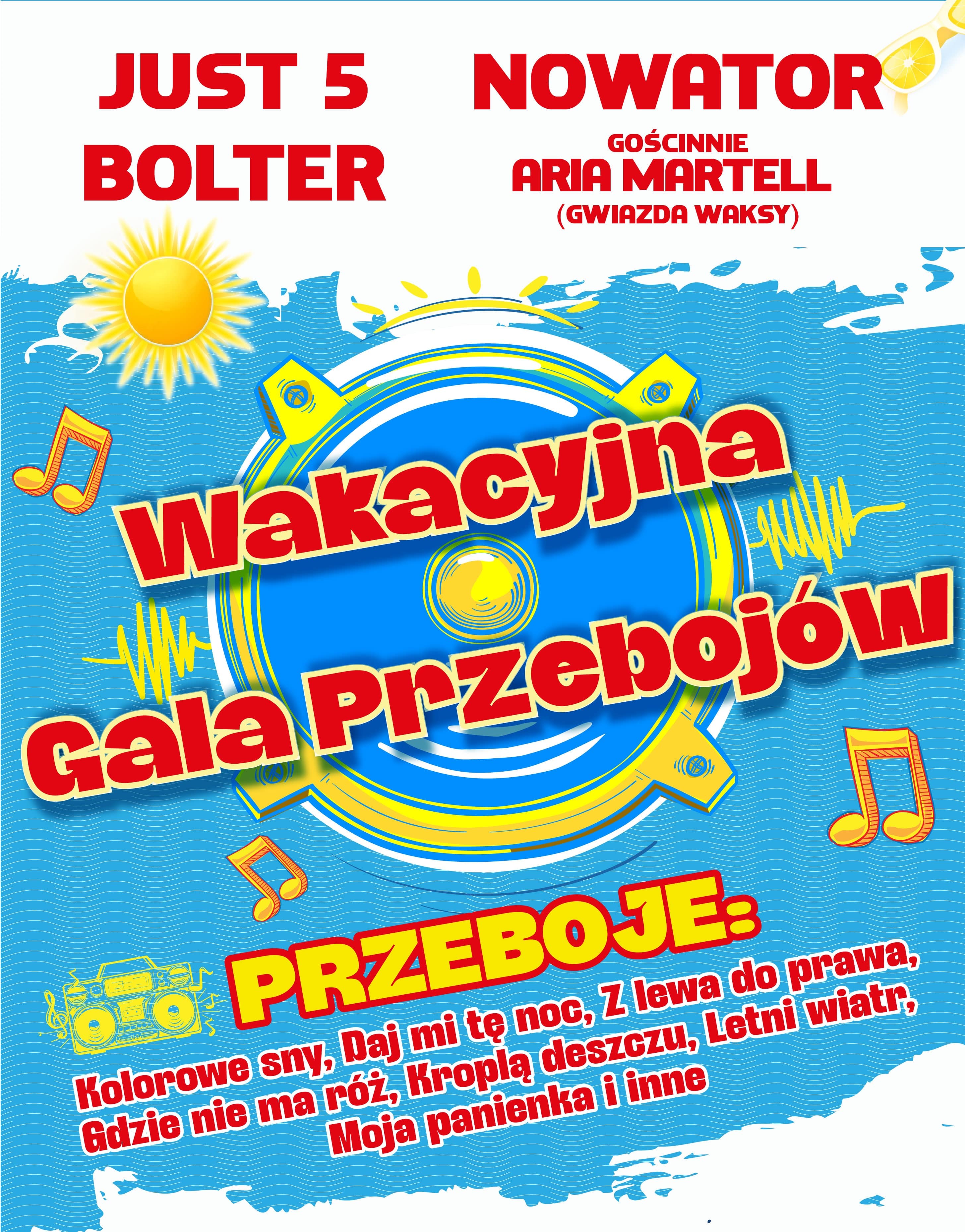 Wakacyjna Gala Przebojów: Just 5 x Bolter x Nowator gośćinnie Aria Martell - więcej informacji