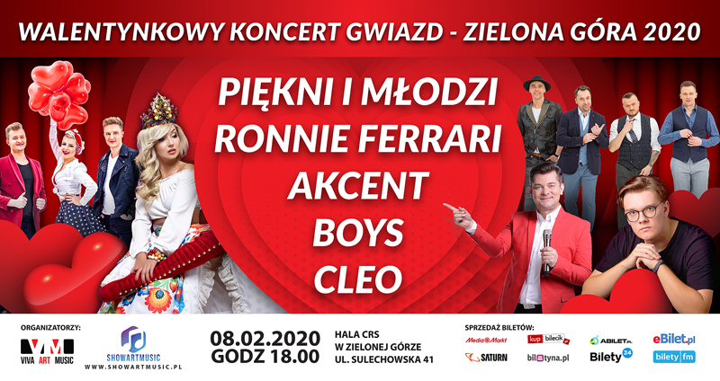 Koncert rejestrowany jest przez kamery TV Walentynkowy Koncert Gwiazd Zielona Góra 2020r. Biorąc udział w powyższym wydarzeniu wyrażają Państwo zgodę na wykorzystanie swojego wizerunku przez organizatora koncertu.