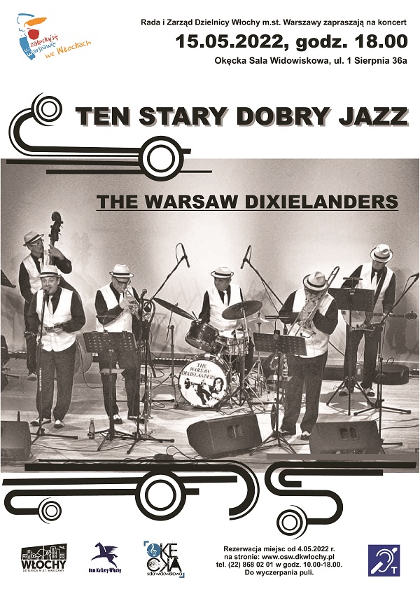 Rada i Zarząd Dzielnicy Włochy m.st. Warszawy zapraszają na koncert Warsaw Dixielanders! Na repertuar zespołu składają się znane standardy jazzowe oraz znane przeboje muzyki rozrywkowej i filmowej okresu przed i powojennego.