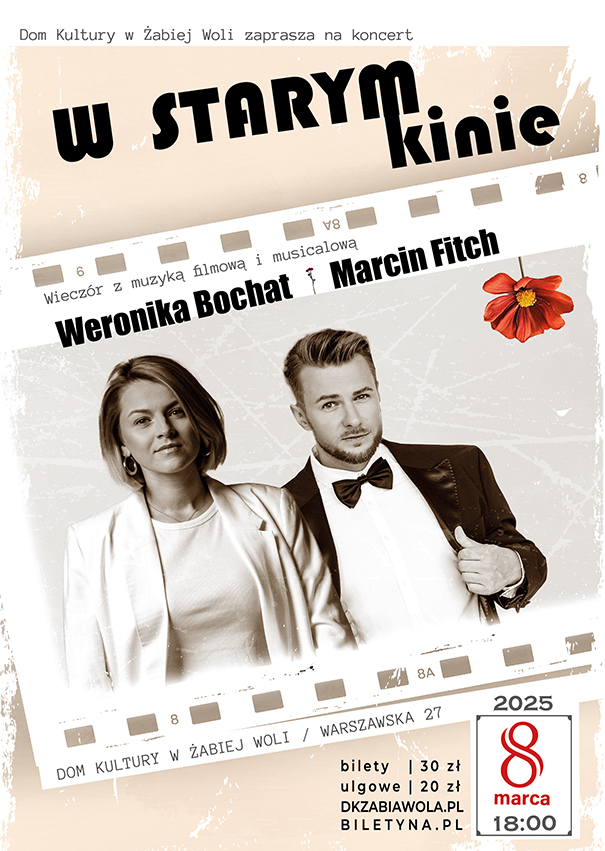 Dzień kobiet - niezapomniany wieczór z muzyką filmową i musicalową – koncert „W starym kinie” Weroniki Bochat i Marcina Fitcha