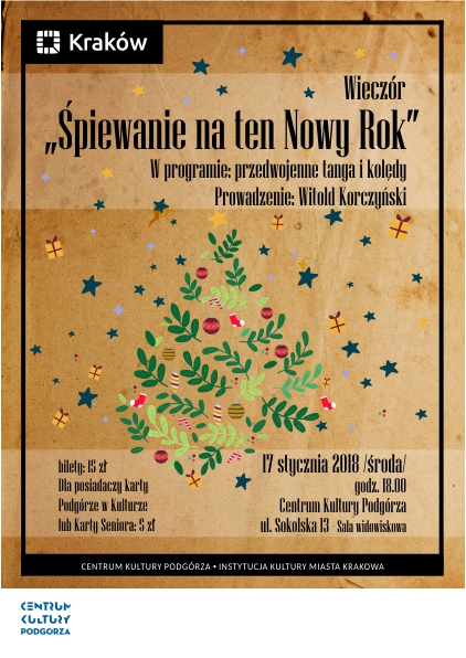 Wieczór "Śpiewanie na ten Nowy Rok" Prowadzenie: Witold Korczyński W programie: przedwojenne stare tanga i kolędy