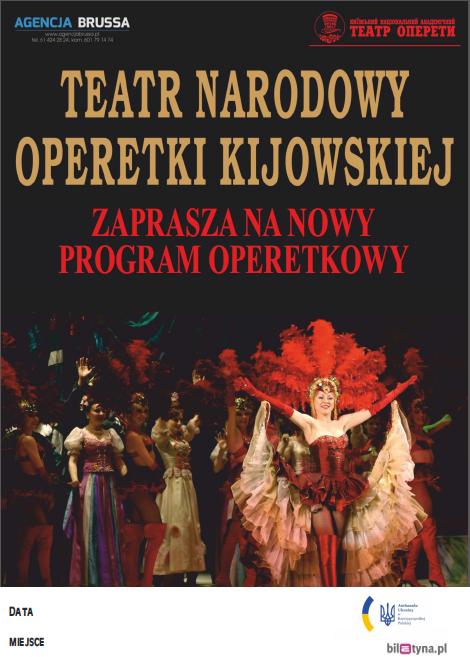W programie koncertu, który trwa ponad dwie godziny, będzie można usłyszeć znane i lubiane arie operetkowe, musicalowe oraz tradycyjne pieśni narodowe Ukrainy. Całość wzbogacona jest pięknymi strojami oraz tańcem baletu i niezwykłym kunsztem 25 osobowej orkiestry. Czy może być coś piękniejszego niż uczucia wyrażane tańcem, muzyką i śpiewem? Na to pytanie odpowie Państwu właśnie ten koncert.