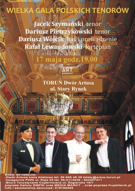 W koncercie wystąpią wspaniali tenorzy Jacek Szymański i Dariusz Pietrzykowski oraz prawie tenor (bas ) Dariusz Stanisław Wójcik, którym na fortepianie towarzyszyć będzie wybitny pianista Rafał Lewadowski