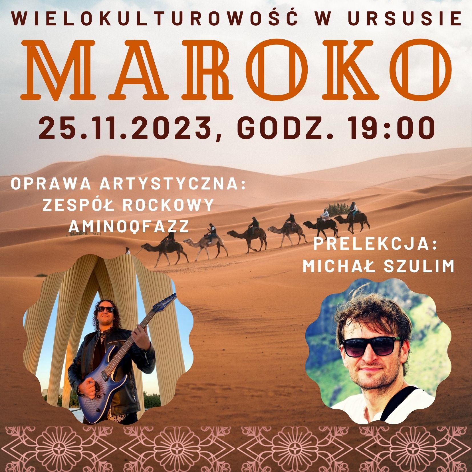 W sobotni wieczór przeniesiemy się do Maroko i poznamy najbardziej fascynujące zakątki tego kraju. Wysłuchamy prelekcji z prezentacją dziennikarza i podróżnika Michała Szulima oraz koncertu rockowego zespołu Aminoqfazz powstałego z inicjatywy marokańskiego gitarzysty Amina El Mountassira.