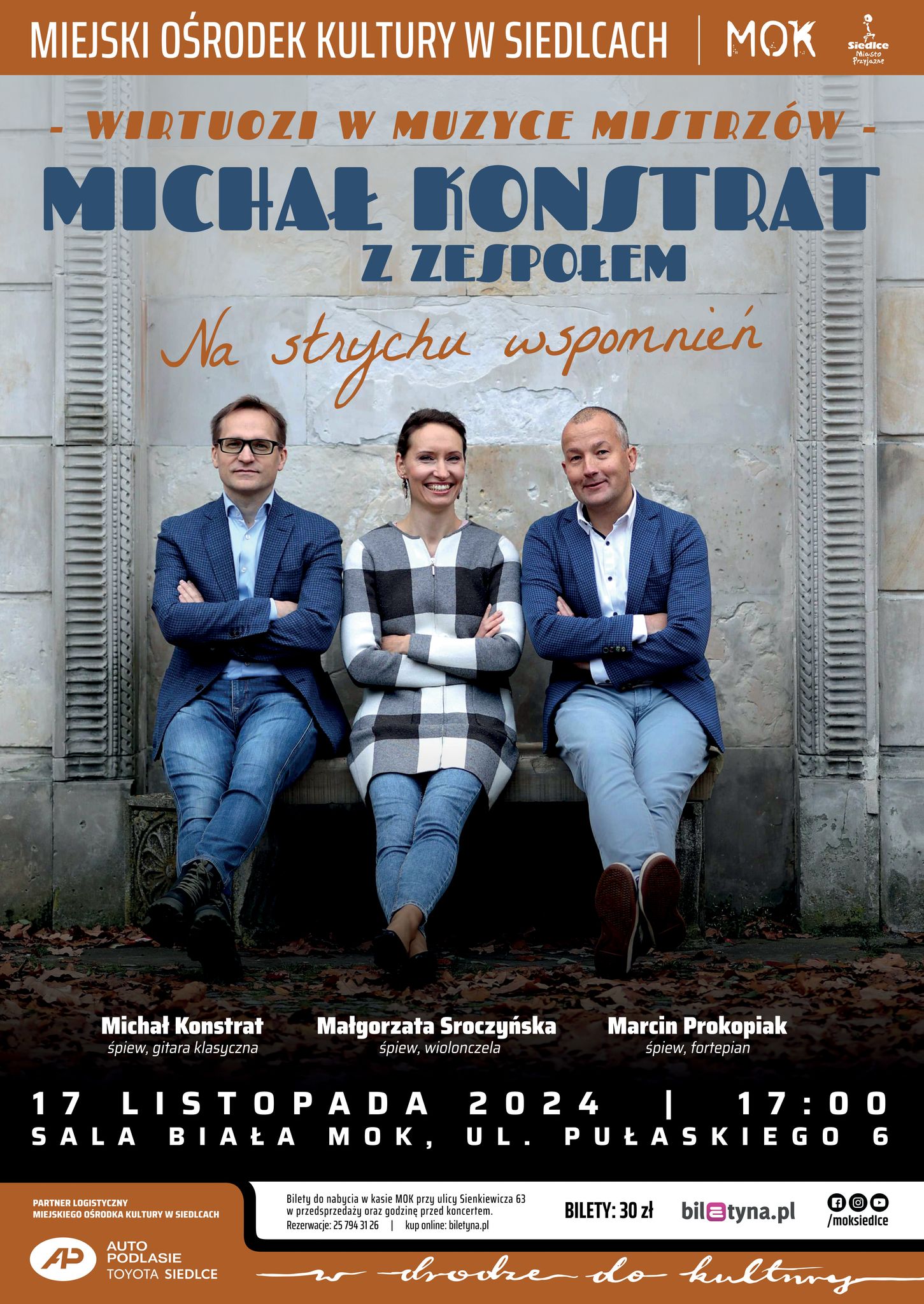 Zapraszamy na listopadowy wieczór z piosenką autorską i poezją śpiewaną w wykonaniu Michała Konstrata z zespołem. Będzie nostalgicznie, melancholijnie, lirycznie i z pazurem. Wolno, szybko, ze szczyptą dobrego humoru. Nie zabraknie również utworów do wierszy polskich poetów: Adama Mickiewicza Krzysztofa Kamila Baczyńskiego, Cypriana Kamila Norwida i Jarosława Iwaszkiewicza. Będzie pięknie i wzruszająco!