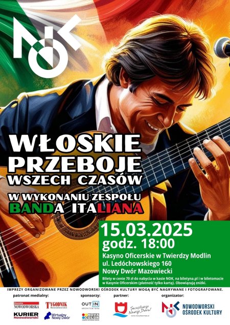 Nowodworski Ośrodek Kultury zaprasza na koncert zespołu Banda Italiana pt. "Włoskie Przeboje Wszech Czasów".