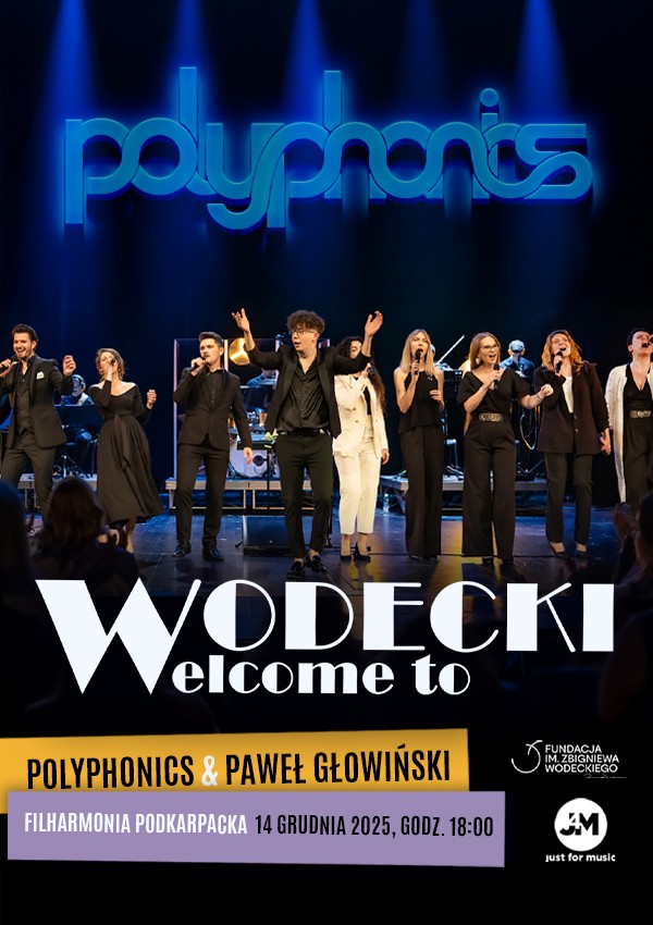 Po sukcesie tras koncertowych z Alicją Majewską oraz z Ireną Santor, Polyphonics wraca z projektem Wodecki Welcome to, podarowując Państwu doskonałe wykonania niezapomnianych przebojów Zbigniewa Wodeckiego, prezentujących nie tylko jego muzykę, ale także oddające jego osobowość i ducha. „Lubię wracać tam, gdzie byłem”, „Chałupy”, „Zacznij od Bacha”, „Z tobą chcę oglądać świat” – każde wykonanie Polyphonics to muzyczny dialog z Mistrzem, przenoszący w świat uniwersalnych prawd bliskich sercom słuchaczy w każdym wieku.