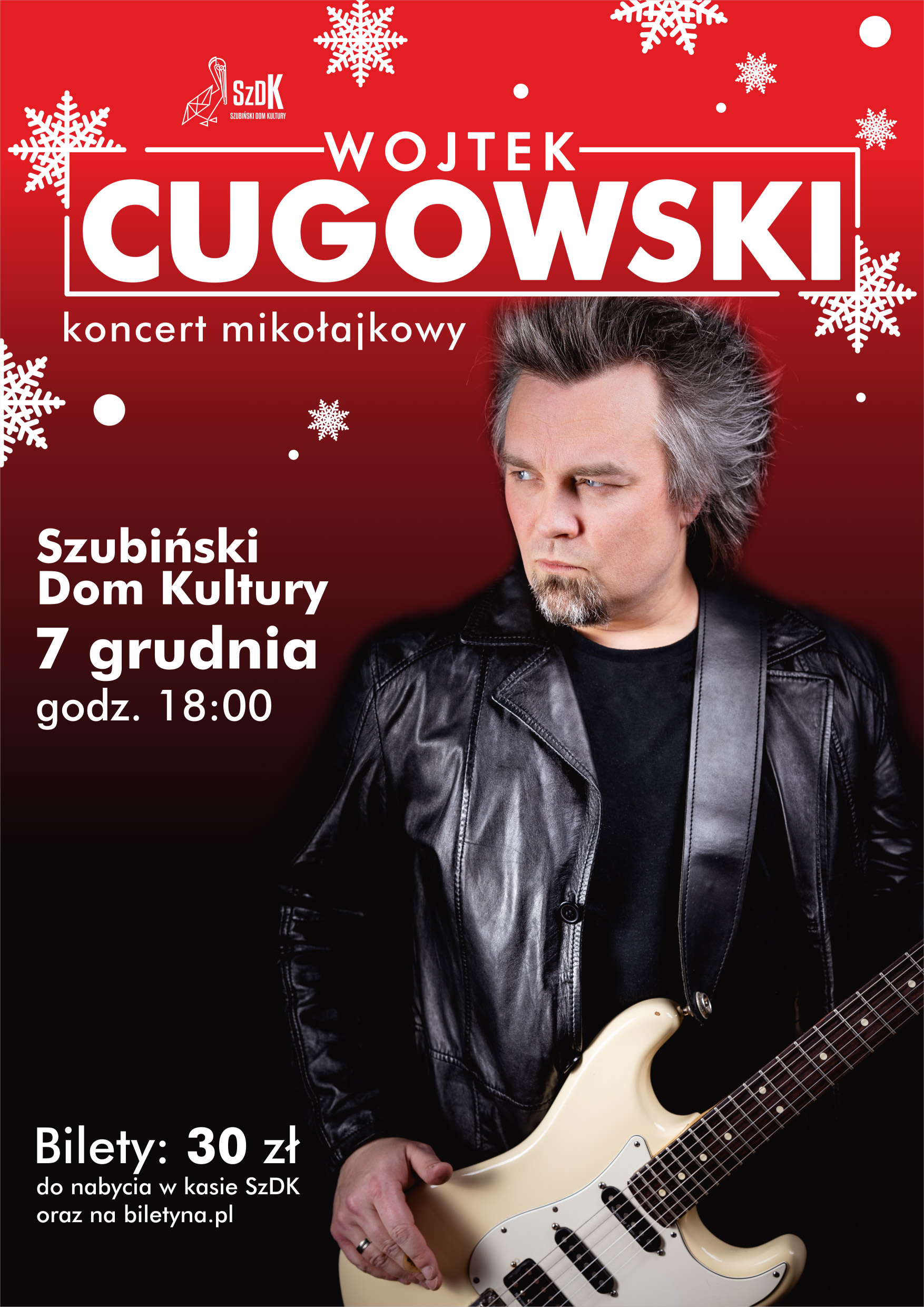 Wyjątkowy, zwiastujący świąteczną atmosferę mikołajkowy koncert Wojtka Cugowskiego, przepełniony ciepłem akustycznych gitar i intrygującym głosem artysty. Wojtek aktualnie promuje swoją najnowszą płytę „Nie czekaj na znak” i oprócz klasycznych utworów świątecznych w programie na pewno pojawi się kilka akcentów z tego właśnie krążka. Na okrasę zapewne nie zabraknie również odwołań do muzycznej przeszłości Wojtka, jako że przez lata stanowił jeden z filarów lubianego zespołu BRACIA.