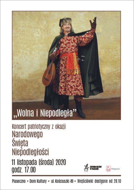 Koncert patriotyczny z okazji Święta Niepodległości w wykonaniu śpiewaków klasycznych z akompaniamentem na żywo. W pierwszej części usłyszymy znane pieśni patriotyczne jak Warszawianka, Szara Piechota czy Przybyli Ułani… Drugą część wypełnią melodie mistrzów takich jak G. Gershwin, J. Strauss, i E. Kalman.