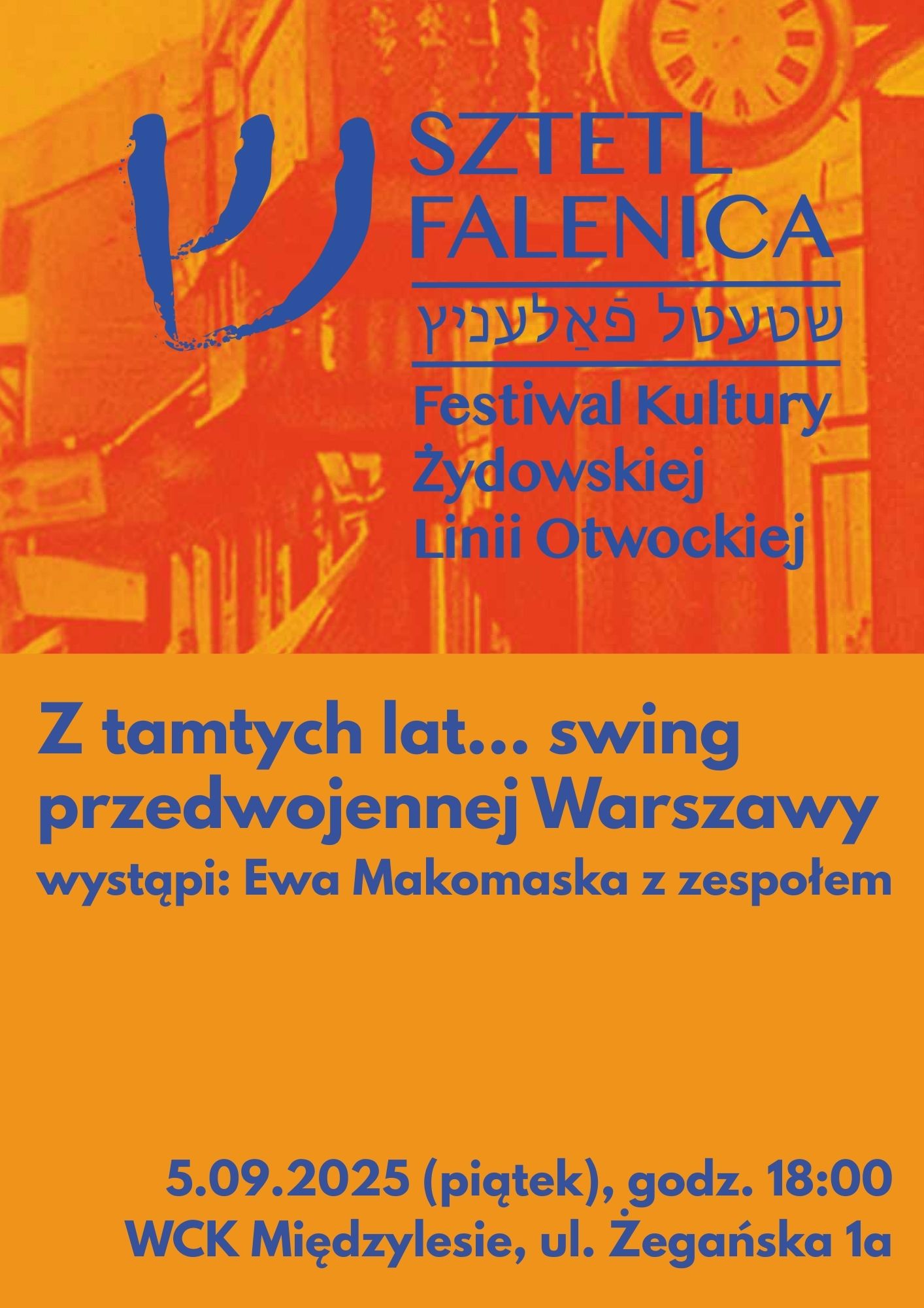 Ewa Makomaska – aktorka Teatru Polskiego w Warszawie przypomni cudowne lata 20-te i twórców pochodzenia żydowskiego, którzy na polski, a głównie warszawski grunt artystyczny przenosili rytmy i brzmienia, które wtedy królowały za oceanem, a także w Paryżu i Berlinie. Aktorka ze znakomitymi muzykami opowie o tym, jak swing i jazz zawitał do Polski za sprawą tych artystów, którzy poznali gorące tanga i foxtrotty podróżując po Europie zachodniej, jak również dzięki zagranicznym filmom i płytom.