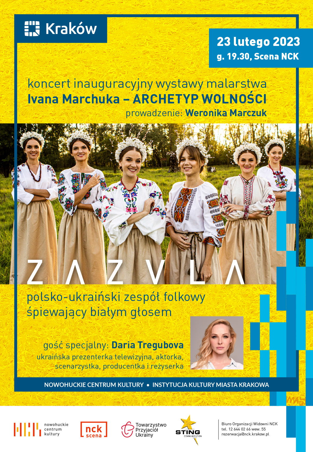 Koncert będzie szansą by poznać twórczość polsko - ukraińskiego zespołu Zazula, który specjalizuje się w technice „śpiewu białego". Koncert uświetni ukraińska gwiazda aktorstwa i telewizji, Pani Daria Tregubova, która przybliży nam poezję uwielbianą przez samego Mistrza, Ivana Marchuka.