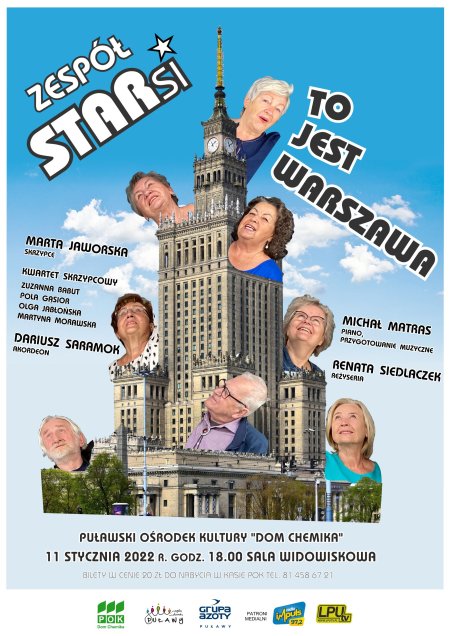 Na koncert „To jest Warszawa”. zapraszamy 11 stycznia 2022 r. o godz. 18:00 do sali widowiskowej POK. Bilety w cenie 20 zł dostępne w kasie, tel.: 81 458 67 21.