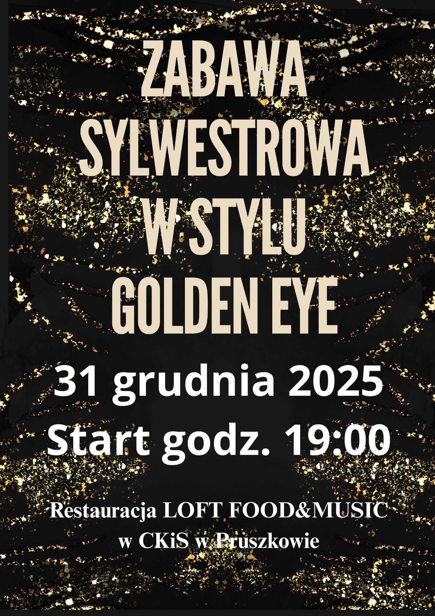 Skorzystaj z wyjątkowej oferty i przeżyj z nami niepowtarzalny, muzyczny Wieczór Sylwestrowy. Zapraszamy na Zabawę Sylwestrową w stylu Golden Eye.