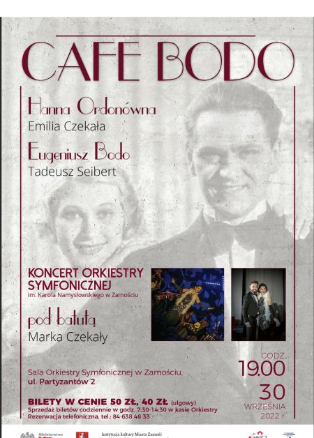 W czarowną atmosferę międzywojennej Polski wprowadzą znakomici artyści, w rolach głównych wystąpią bowiem absolwenci wokalistyki jazzowej Akademii Muzycznej w Bydgoszczy: Tadeusz Seibert finalista programu The Voice of Poland, wcieli się w tytułowego Bodo, Emilia Czekała śpiewać będzie głosem Ordonki, zaś sentymentalne dźwięki dostarczy Orkiestra Symfoniczna im. Karola Namysłowskiego.
