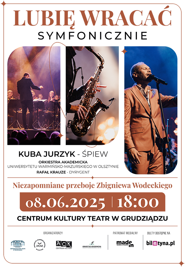 Lubię wracać Symfonicznie to niezapomniane utwory z repertuaru Zbigniewa Wodeckiego w opracowaniach symfonicznych Tomka Szymusia. W rolę legendy wcieli się Kuba Jurzyk ze Studia Accantus! Towarzyszyć mu będzie 30 osobowa Orkiestra Akademicka UWM!