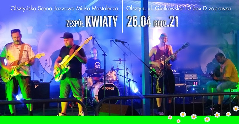 Kwiaty od ponad 10 lat rosną w miejscu nazywanym Domem Kultury Likusy w Olsztynie. Uprawa dźwięków, polega najczęściej , na wspólnej podróży przez krainę muzyki, i wyłuskiwanie z niej tego najlepsze. Kwiaty mogą zakwitnąć także dla Was, i zapraszają na koncert który odbędzie się 26 kwietnia w sali Jazz'owej u Mirka Mastalerza.
