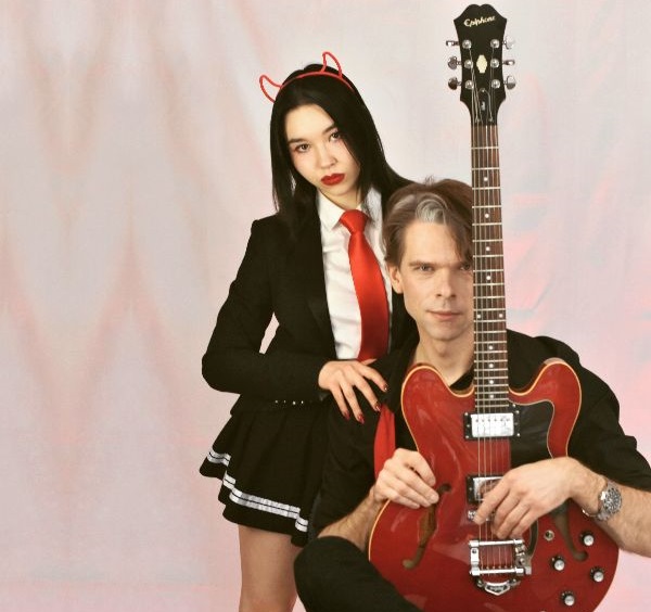 Wykonujemy muzykę w duecie z pomocą loopera i gry na żywo (gitary: akustyczna, elektryczna, basowa).