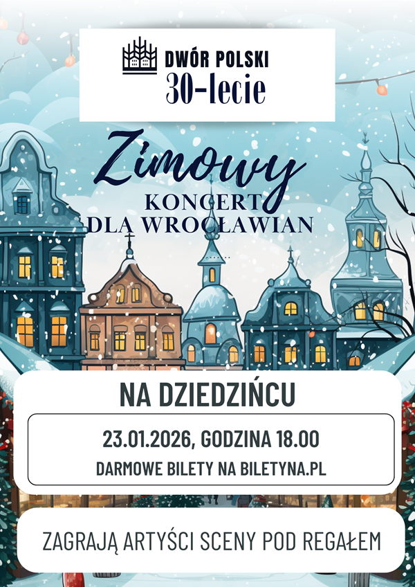 Dlatego w ramach obchodów 30-lecia zapraszamy Państwa na wyjątkowy, pełen światła i muzyki Zimowy Koncert na Dziedzińcu Dworu Polskiego.