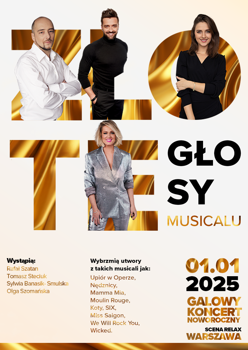 Już wkrótce miłośnicy musicalu będą mieli okazję przeżyć wieczór pełen emocji, wzruszeń i pięknej muzyki. Galowy Koncert Noworoczny „Złote Głosy Musicalu" to wydarzenie, które przeniesie publiczność w świat największych musicalowych produkcji, prezentując utwory z takich hitów jak Upiór w Operze, Nędznicy, Mamma Mia, Miss Saigon, Wicked, Skrzypek na Dachu czy We Will Rock You.