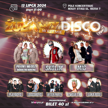 13 lipca od godziny 16:00 na polu koncertowym w Nowym Stawie zagrają największe gwiazdy muzyki disco polo, a wśród nich m.in.