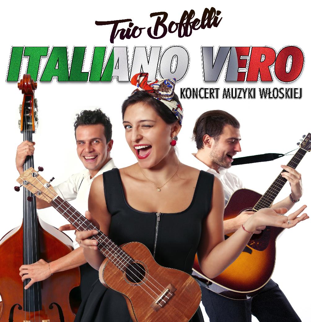 Zapraszamy wielbicieli Italii, a także tych, którzy pragną poznać ją lepiej, na muzyczną podróż pełną opowieści, pięknych melodii, wzruszeń i śmiechu. Trio Boffelli to zespół młodych entuzjastów, absolwentów uczelni muzycznych we Włoszech i w Polsce. Z powodzeniem koncertują na estradach i w klubach we Włoszech, Francji i Hiszpanii. Ich jesienna trasa w Polsce zakończyła się ogromnym sukcesem, dlatego planują powrót już na wiosnę.