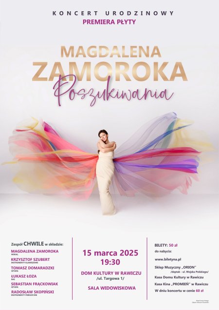 🎸🎤 Premiera płyty "Poszukiwania" Magdaleny Zamoroki i pierwszy koncert zespołu Chwile! Usłysz autorskie utwory oraz największe rockowe hity lat 80/90. 🔥 Nie przegap – emocje gwarantowane! 🎟🎶