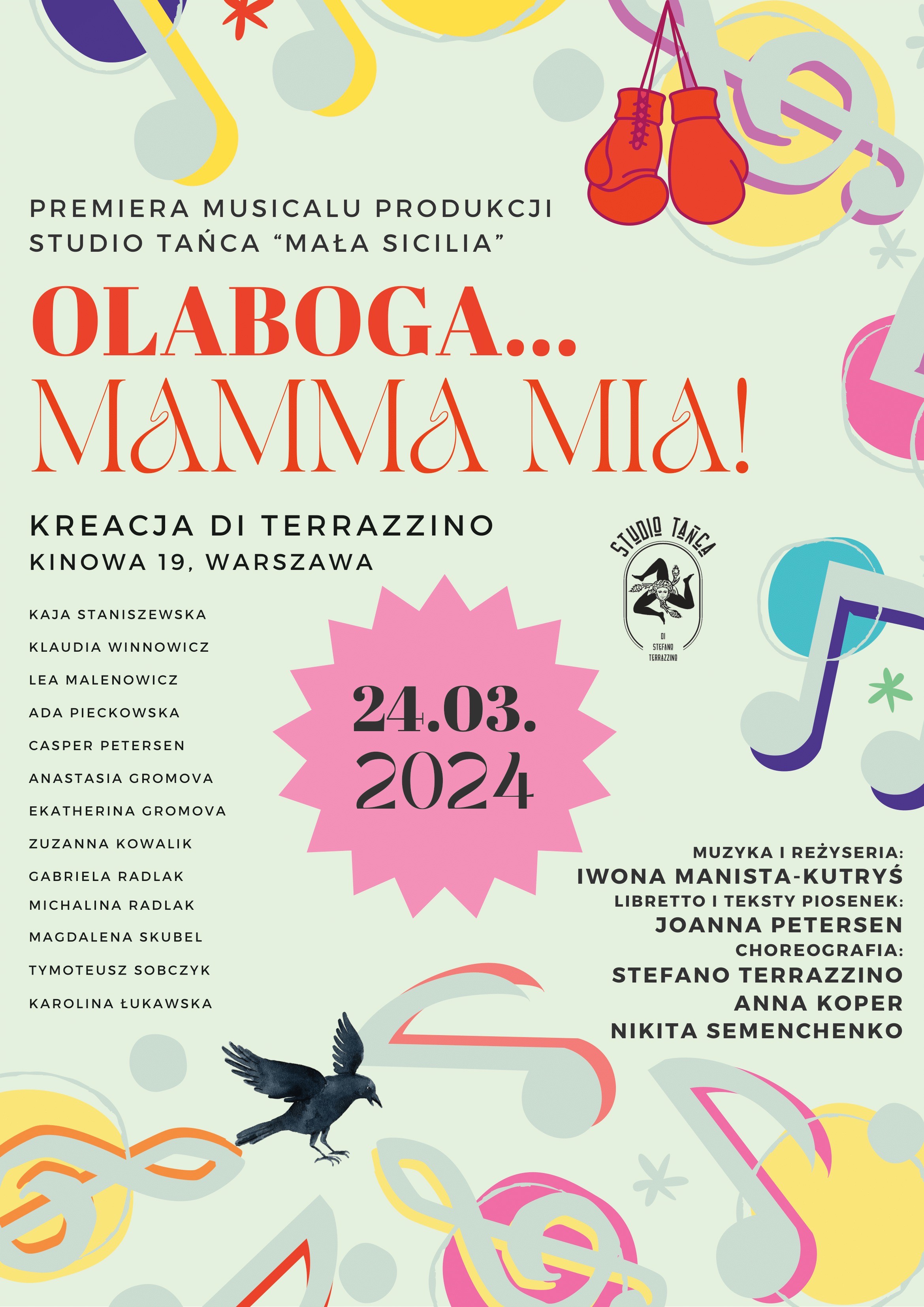 „Olaboga…Mamma Mia!!” to wyjątkowy musical stworzony z myślą o młodzieży i dla młodzieży. To swoista nauka poprzez muzykę, w której dzieła Mickiewicza, Fredry, Słowackiego czy Antoine de Saint-Exupéry zostały wplecione w życie nietuzinkowych nastolatków. Całość objęta jest klamrą ponadczasowego przesłania - „akceptuj siebie i innych, podążaj swoją drogą”.