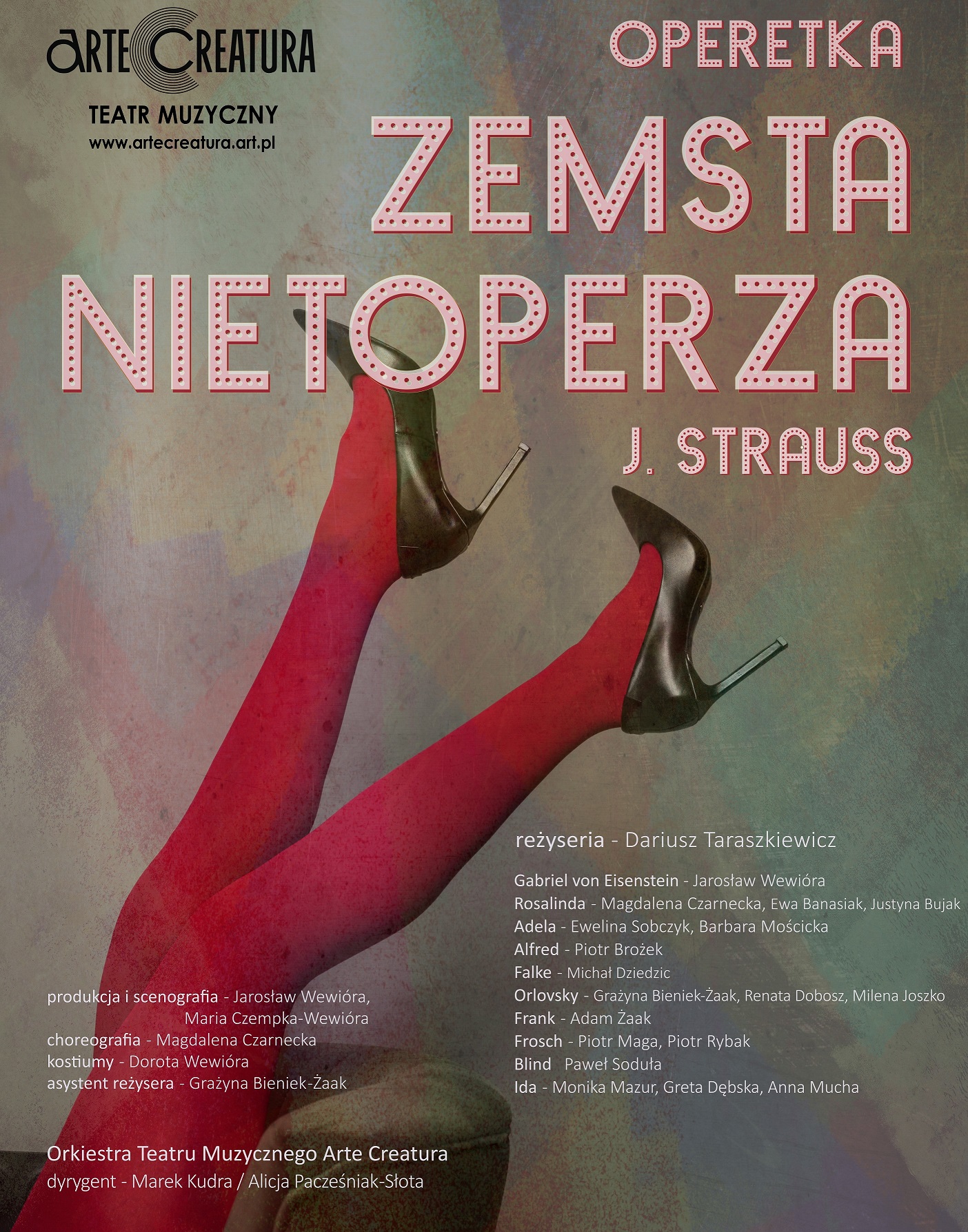 Operetka „Zemsta nietoperza” Johanna Straussa II nie bez powodu uznawana jest za genialną. Posiada jedno z najlepszych w operetkowej literaturze libretto, które tak zaintrygowało Straussa, że w rekordowym czasie sześciu tygodni skomponował do niego muzykę. Operetka, której akcja rozgrywa się pod koniec XIX w., przesycona jest tanecznym rytmem i wiedeńską radością życia. Bawi publiczność pikanterią sytuacji i dialogów. Tytułowa zemsta to przewrotna intryga doktora Falke, który mści się za kawał, jaki zrobił mu bogaty finansista Eisenstein. Zostawił go mianowicie po karnawałowej maskaradzie nad ranem w centrum miasta zupełnie pijanego w przebraniu nietoperza. Falke snuje zagmatwaną intrygę, w którą wciąga całe grono przyjaciół. Wszystko kończy się, oczywiście, szczęśliwie, a atmosfera zabawy i upojenia towarzysząca bohaterom nawet w więzieniu, przenika zarówno tekst, jak i wspaniałą muzykę. Dodatkowym atutem polskiej wersji, jest fakt, że libretto znakomicie i dowcipnie przełożył na język polski Julian Tuwim.