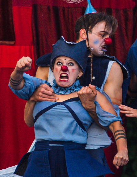 Tytułowy Błazen to William Kemp, artysta odgrywający komiczne role w spektaklach Szekspira. To w wieku XVI. Dzisiaj, aktorzy Kolektywu Kejos nawiązują do tej postaci tworząc spektakl złożony z luźno powiązanych scenek, na które składają się pokazy zręczności, zabawne scenki aktorskie z wykorzystaniem cytatów z Szekspira, pokazy pantomimiczne, czy krótkie formy taneczne.