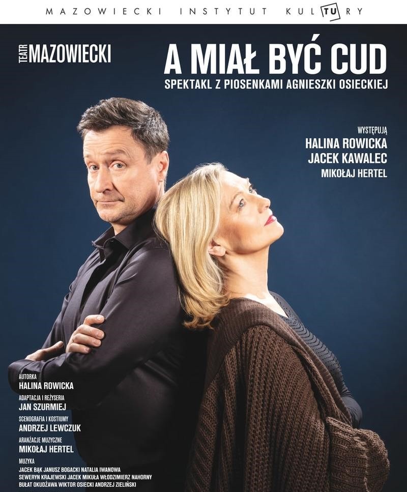 Mogą siebie zapytać Anna i Franciszek – bohaterowie nowej sztuki Teatru Mazowieckiego – spektaklu poetycko-muzycznego „A miał być cud”, którego scenariusz powstał na kanwie tekstów Agnieszki Osieckiej. A ona jak nikt inny umiała pisać o miłości – nie tylko tej wielkiej, pierwszej, ale i tej dojrzałej, znudzonej rutyną dnia codziennego, tęskniącej za szaleństwem i porywami wielkich namiętności. Osiecką można nazwać mistrzynią w wynajdywaniu poezji w prozie życia, w inteligentnym łączeniu tego, co wzniosłe i poważne, z tym co niskie i zwyczajne. Może jednak, koniec końców, to właśnie ta codzienność jest czymś najważniejszym? Kiedy po latach bycia razem wydaje nam się, że życie z kimś innym byłoby lepsze i wspanialsze, nagle okazuje się, że chcemy być z tą lub z tym właśnie – w znanej, czasami nieciekawej, ale bliskiej zwyczajności. Tak właśnie jak Anna i Franciszek – już niemłodzi, znający na wylot swoje słabostki, często irytujący siebie nawzajem, drażliwi, ale mimo wszystko ze sobą, obok siebie. Czasami tylko tęsknota nas gna, coś w sercu gra, kiedy chce się lecieć, uciec i szaleć, kiedy chce się powiedzieć słowami piosenki Osieckiej – „uciekaj moje serce”.