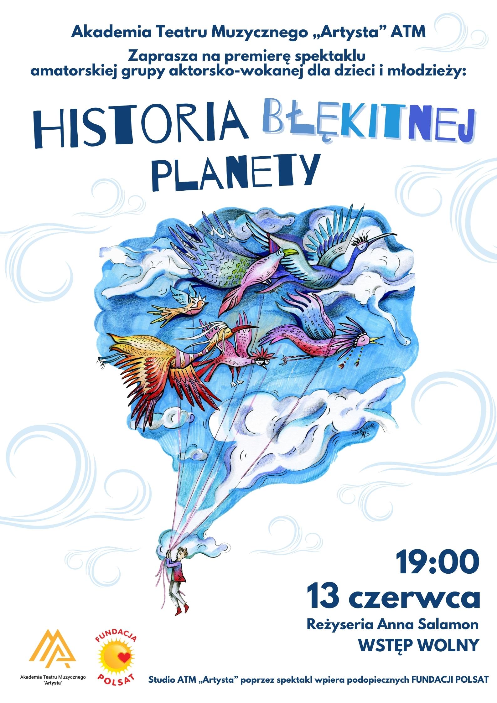 Amatorska Grupa Wokalno-Aktorska Dzieci i Młodzieży ATM „Artysta” zaprasza na premierę spektaklu grupy warsztatowej pt. Historia Błękitnej Planety