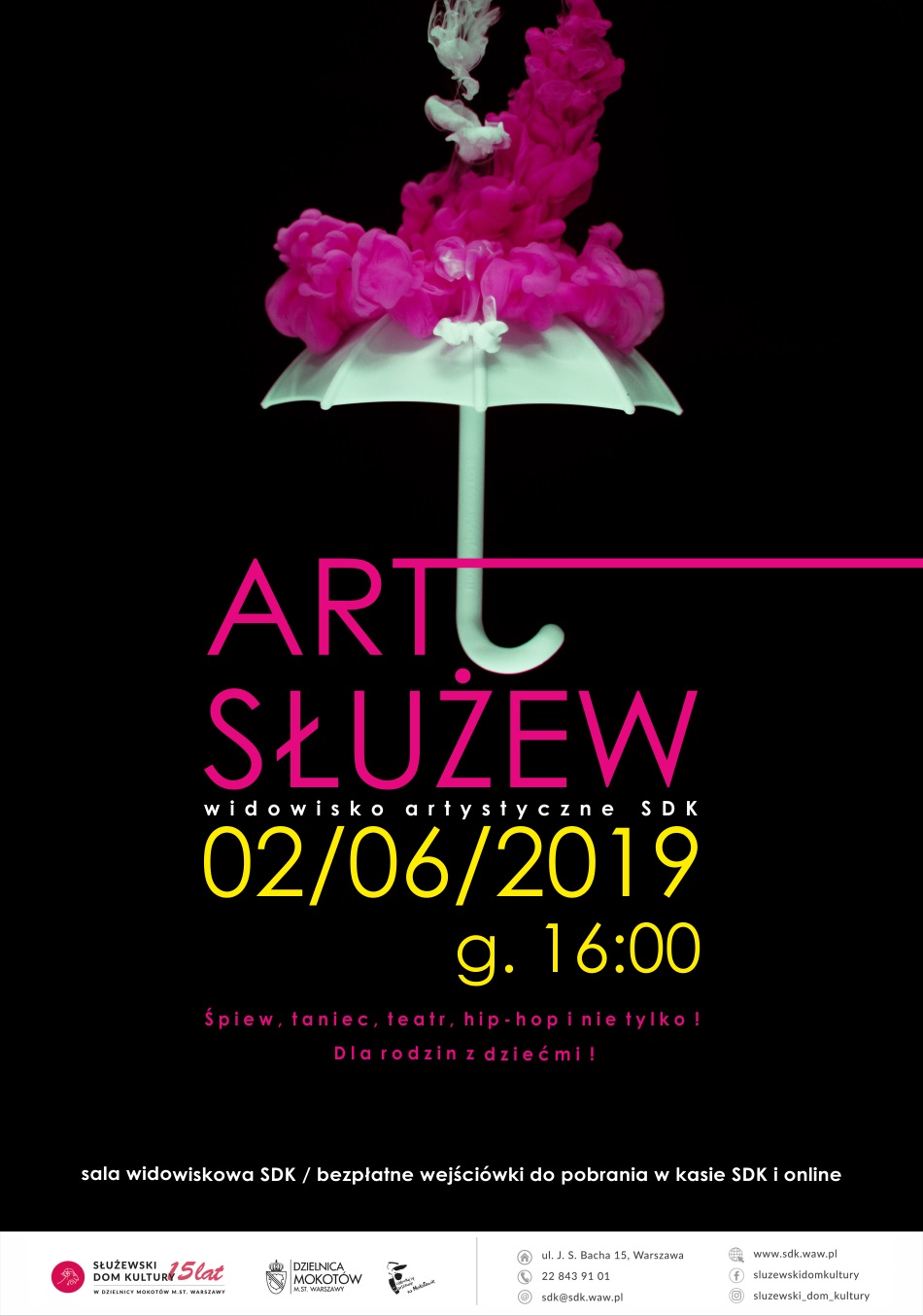 Śpiew, taniec, teatr, hip-hop i nie tylko! "Art Służew" to widowisko, którego narratorem będzie sztuka. Mnogość jej dziedzin zaprezentują artyści z Służewskiego Domu Kultury.