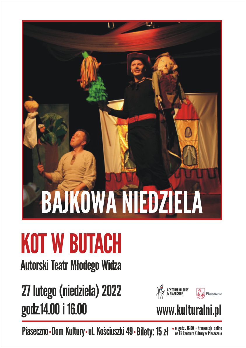 Jaki może mieć pożytek z kota? Do czego kotu potrzebne są buty, jak je wykorzysta i co z tego będzie miał biedny młynarz? – zobaczycie podczas spektaklu. Spektakl grany jest w planie żywym i lalkowym. Przez scenę pełną kolorowej scenografii przemierzy tytułowy Kot, Janek, Brat, Król, Królewna, Zajączki i in. Ciekawa muzyka, ciekawe efekty, wartka akcja zapewnia dobrą zabawę dla dzieci, no i oczywiście dla ich opiekunów.