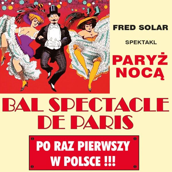 Prezentujemy Państwu niepowtarzalny klimat francuskiej piosenki i Paryża lat 50 i 60 tych. Muzyka, taniec i piękne kostiumy pozwolą przybliżyć Państwu obraz Paryża z jego najpiękniejszych lat. Kawiarnie, spacery brzegiem Sekwany, spotkania artystów, malarze, kwiaciarki, musicale, czyli jednym słowem Paryska Bohema. Najsłynniejsze piosenki Edith Piaf, Gilberta Bécaud, Yves Montanda i Charlesa Aznavoura: "La Foule", "Non je ne regrette rien", "Les feuilles Mortes", "Le Bourgeois", "Nathalie", to niektóre z wykonywanych w spektaklu utworów. Twórcą tego wyjątkowego widowiska jest Fred Solar, artysta, producent i mecenas kultury. Karierę w branży muzyczno - rozrywkowej Fred Solar rozpoczął w drugiej połowie lat siedemdziesiątych i rozwija ją z powodzeniem do dnia dzisiejszego. To on był twórcą fantastycznych spotkań z artystami Paryża, na których oprócz tradycyjnego udziału w koncercie widzowie byli zapraszani na scenę do wspólnej zabawy, stawali się jego nieodłączną częścią. Takie bale - spektakle stały się niezwykle popularne we Francji, Belgii, Szwajcarii i wielu innych krajach, gdzie Fred zawitał ze swoją ideą. Do Polski Fred Solar przyjedzie już jesienią br., na pierwsze tournée ,, Bals Spectacles de Paris". Do projektu zostali zaproszeni profesjonalni artyści muzycy i tancerze pochodzący z renomowanych grup artystycznych i zespołów baletowych. Francuskie walce, tango, kankan i wiele innych utworów przenoszą widzów w świat paryskiego kabaretu. Barwne kostiumy, wspaniali tancerze, muzycy i wiodące brzmienie akordeonu podkreślają niesamowitą atmosferę Paryża nocą. Spektakl - bal to Show, w trakcie którego widzowie zostaną zaproszeni do czynnego udziału w klimacie francuskich melodii