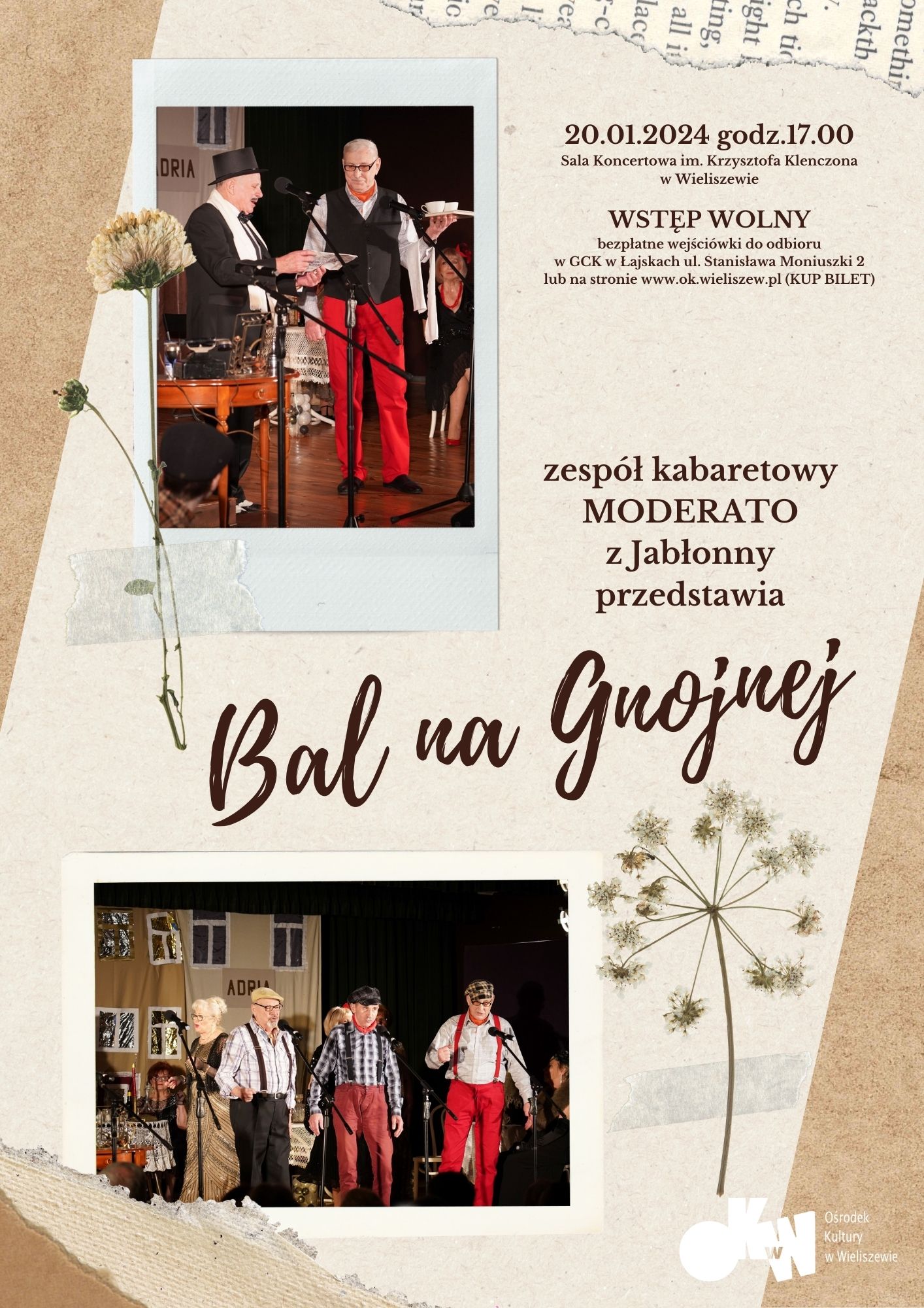 Podczas spektaklu artyści kabaretu Moderato wcielą się w postacie z piosenek z tamtego okresu – Adę, której nie wypada czy pannę Andzię, która ma wychodne. Sentymentalna muzyczna podróż to przepis na kulturalny wieczór w doborowym towarzystwie.