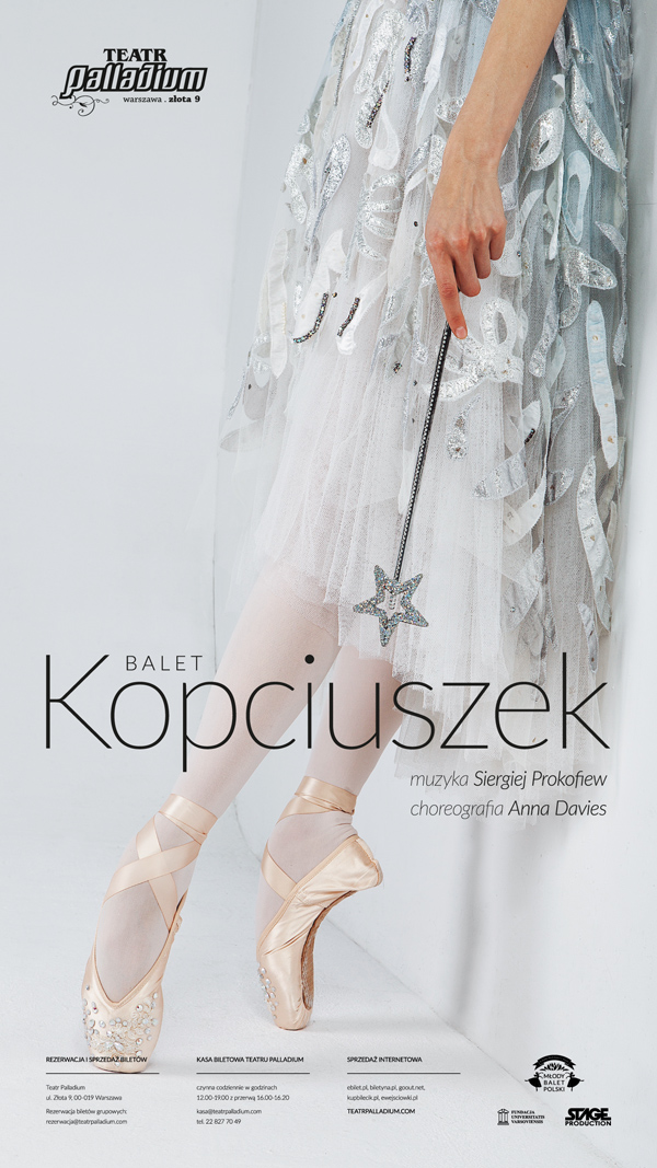 Kopciuszek bajka baletowa z muzyką Siergieja Prokofiewa. Spektakl skierowany jest głównie dla najmłodszych widzów jako propozycja teatralna dla całej rodziny, zachwyca i wzrusza do łez dzieci i dorosłych. Opowieść o Kopciuszku czytana jest z Wielkiej Księgi przez wróżkę tancerkę, która przenosi widza w świat teatru i tańca.