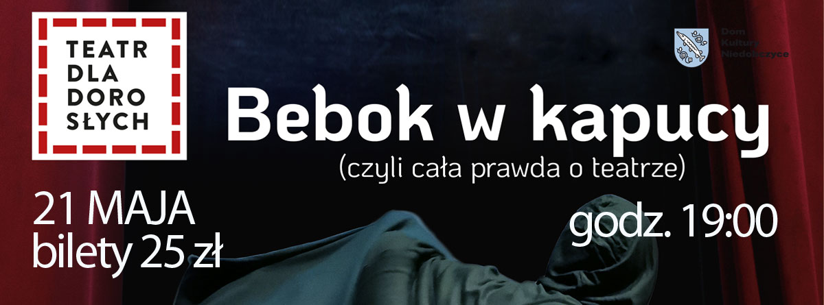 „Bebok w kapucy (czyli cała prawda o teatrze)” – najnowsze przedstawienie Teatru dla Dorosłych, w którym dowiadujemy się o niebezpiecznym stworze, czyli beboku, grasującym w siedzibie teatru i sabotującym prace aktorów. Na scenie pojawia się też reporterka z Warszawy, która przyjechała do Bierunia, by nakręcić reportaż o Ślązakach i procesie tworzenia spektaklu. Jesteśmy więc świadkami powstawania spektaklu, czyli teatru w teatrze. Wszyscy grają tu mniej lub bardziej siebie, oczywiście z przymrużeniem oka, aktorzy śmieją się z siebie i swoich ambicji.
