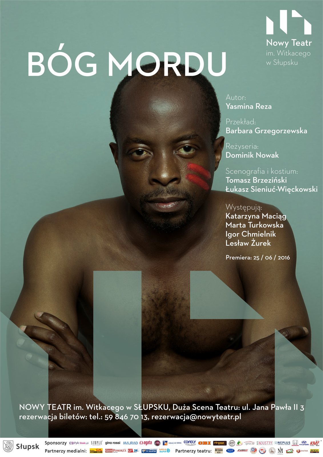 „Bóg mordu” to niezwykle „aktorsko” napisana komedia psychologiczna jednej z najpopularniejszych autorek w Europie Yasminy Rezy (wielokrotnie wystawiana „Sztuka” czy ostatnio wydany bestseller „Świt, wieczór lub noc” opisujący skandale prezydenta Francji N. Sarkozy’ego). Akcja spektaklu rozgrywa się w czasie rzeczywistym podczas spotkania dwóch małżeństw dotyczącego bójki ich dzieci. Czwórka dorosłych "wychowanych" osób rozmawia w „kulturalny” sposób o zaistniałej sytuacji. Z pozoru kurtuazyjne spotkanie stopniowo przeradza się w otwarty konflikt, odsłaniając ciemne strony człowieka żyjącego we współczesnej cywilizacji. Tytułowy „Bóg mordu” uwidacznia się w zachowaniu bohaterów z każdą chwilą spędzoną w jednym pomieszczeniu ukazując coraz większe pęknięcia w skorupie mieszczańskiego wychowania. Tekst, oprócz wielokrotnych adaptacji scenicznych, zyskał ogromną popularność dzięki nakręconemu na jego podstawie filmowi „Rzeź” Romana Polańskiego. Do współpracy przy realizacji spektaklu zaprosiliśmy gwiazdorską obsadę (popularni aktorzy filmowi i telewizyjni Katarzyna Maciąg i Lesław Żurek), która występują na słupskiej scenie z aktorami Nowego Teatru.