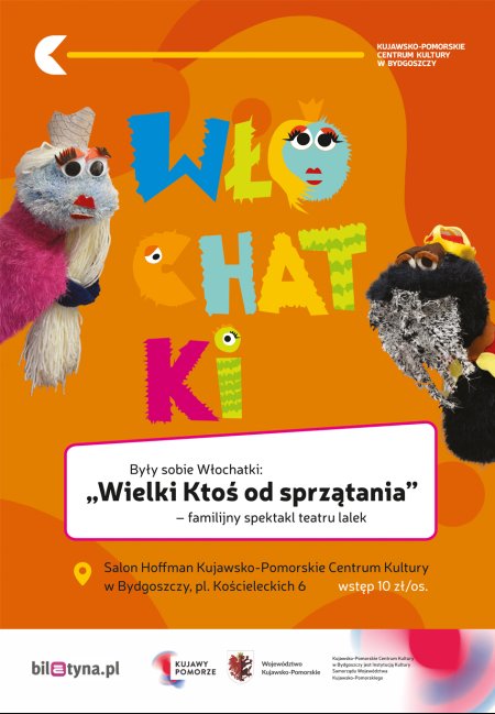 Bohaterami zdarzenia są lalki – Włochatki, mieszkańcy KPCK-owego strychu, przeżywają niesamowite i rozmaite przygody, przepełnione tajemnicą, zagadkami i niekiedy dreszczykiem. Ich historie są zawsze podsycone dobrym humorem i mądrymi radami, a co najważniejsze – morałem. Wszystkie Włochatki są mechate, dlatego mają kudłate i kędzierzawe imiona. Akcja opowieści rozgrywa się na poddaszu, gdzie często zagląda dziewczynka przychodząca na zajęcia do KPCK. Puszyste stwory żyją z Agatką w wielkiej przyjaźni. Przepadają za nią, bo dziewczynka je rozumie, pomaga im rozwiązywać różne problemy i nierzadko powstające między nimi konflikty, czyta im bajki i uczy ich piosenek, a przede wszystkim bardzo je kocha. Zapraszamy na spektakl z bałaganem w tle. Kto w domu powinien zajmować się porządkami? Jak w najprostszy sposób można sobie z nimi poradzić i komu przysługuje odznaka Wielkiego Ktosia od sprzątania? Odpowiedzi znajdziecie, oglądając przedstawienie. Wiek: 2,5+.