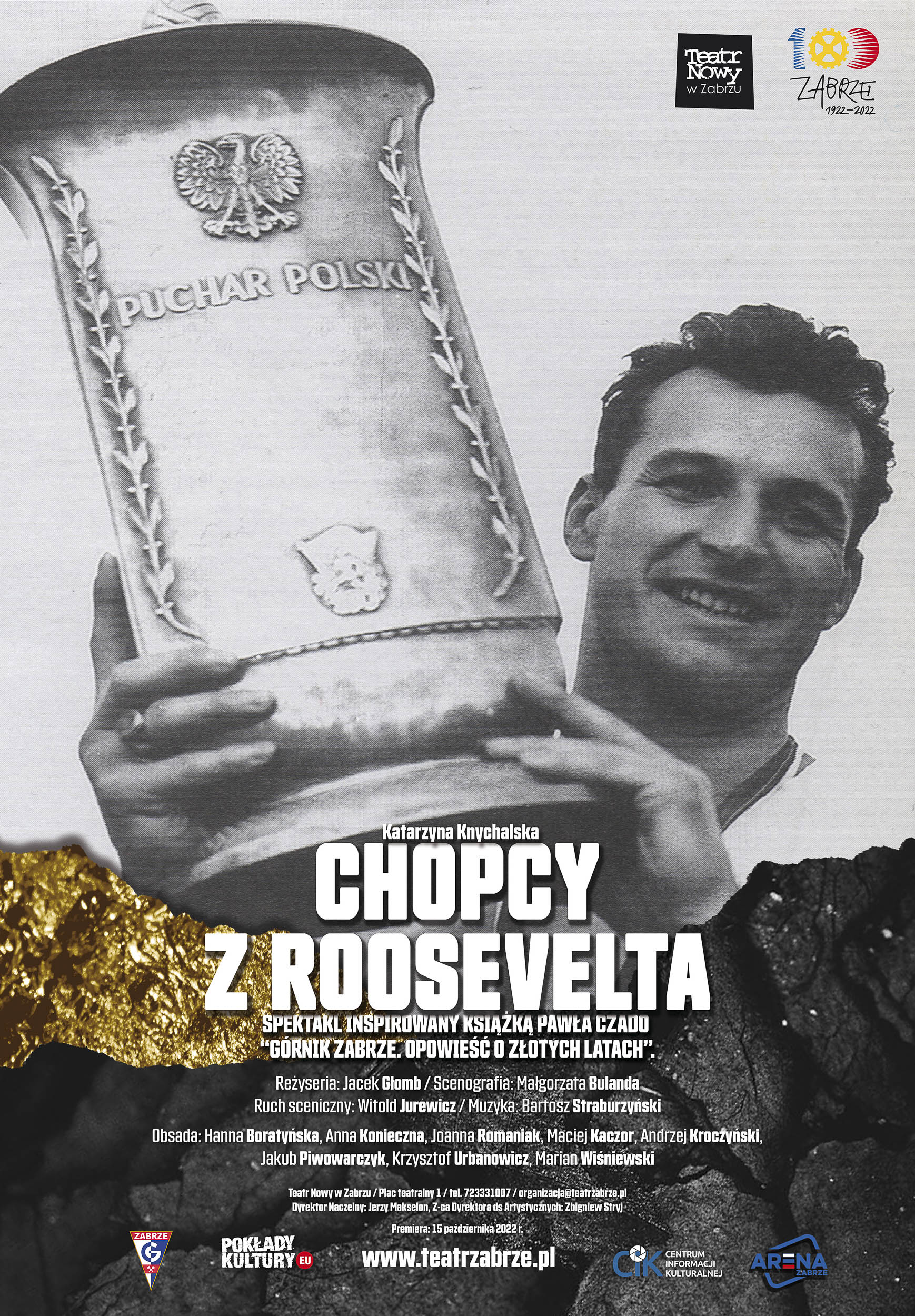 „Chopcy z Roosevelta” będą więc opowiadać o historii sportowców, którzy na co dzień zmagają się z ogromną ambicją, ograniczeniami ciała, ale też ze swoją śląską tożsamością czy troskami życia codziennego. To będzie również opowieść o ich rodzinach, sąsiadach i kibicach całej Polski. Dzięki takiemu rozszerzeniu spektakl zada pytania: co stanowi o fenomenie takich zjawisk, jak Górnik Zabrze? Czym jest duch sportowy dziś, a czym był kiedyś? Jak zmienia się piłka pod wpływem pieniędzy, oczekiwań i mediów? Co sprawia, że jako Polacy, tak bardzo potrzebujemy sukcesów sportowych, by podkreślić naszą zbiorową siłę? Jakie ambicje przelewamy na piłkarzy?