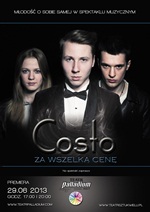To muzyczno-aktorskie widowisko, opowiadające o grupie młodzieży, uczącej się w jednej z najbardziej elitarnych szkół artystycznych w Europie „Costo“. Bohaterów poznajemy od samego początku, kiedy zgłaszają się na casting. Ich losy w szkole nie będą jednak usłane różami. Problemem staną się nie tylko wyjątkowo surowi nauczyciele śpiewu, tańca i aktorstwa, ale także typowe dla nastolatków problemy: miłość, pierwsze spotkania z uzależnieniami, trudne do podjęcia życiowe decyzje, czy strata najbliższych. Spektakl jednak w swojej konstrukcji, jest tak zmienny jak samo życie. Często dramatyczne sceny, przeplatają się z inteligentym i abstrakcyjnym poczuciem humoru bohaterów, który w sekundę powoduje u widzów wybuch śmiechu i lawinę łez. „Costo – za wszelką cenę“ to także 15 wielkich przebojów muzycznych, znanych doskonale każdemu człowiekowi na kuli ziemskiej, do których układy i wykonania wokalne stworzone zostały przez choreografów i wokalistów Teatru Sztuk Wielu, od lat związanych z największymi scenami teatralnymi i estradowymi w kraju. To także efektowne sceny kaskaderskie oraz zapierające dech w piersiach akrobacje na wysokości. W jednej z finalnych scen, wspólnie z młodzieżą TSW wystąpi John Lenon, w najpiękniejszym utworzone o pokoju, szacunku i wzajemnej miłości „Imagine“.
