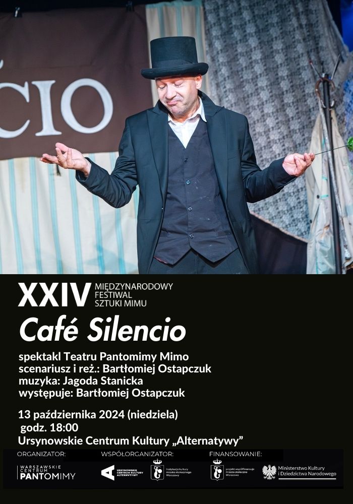 „Café Silencio” spektakl Teatru Pantomimy Mimo scenariusz i reż. Bartłomiej Ostapczuk muzyka: Jagoda Stanicka występuje Bartłomiej Ostapczuk