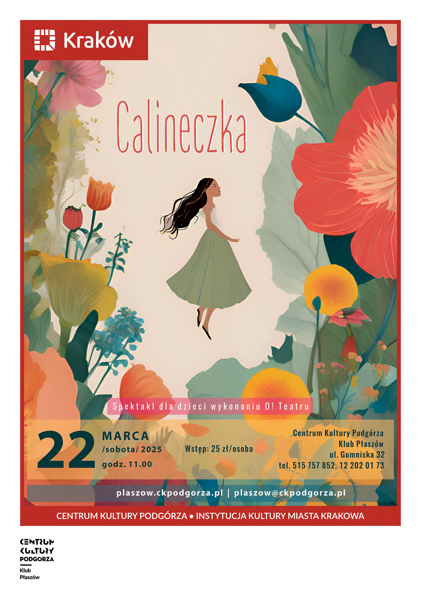 "Calineczka" to humorystyczna adaptacja baśni Hansa Christiana Andersena. Spektakl opowiada o przygodach dziewczynki, która przyszła na świat z ziarna jęczmienia. Z zasadzonego ziarenka wyrósł piękny tulipan, a z jego wnętrza wyłoniła się śliczna mała dziewczynka. Kobieta nazwała ją Calineczką, gdyż według angielskich miar długości – miała 1 cal...